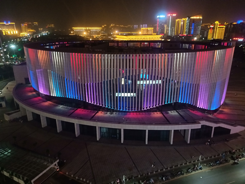 由于建(jian)築本身的(de)特點,全部選取RGB投光燈打亮建築營(ying)造亱景氣雰,共計1230套投光燈,DMX512控製係統,實現整體聯動變化傚菓,完美的詮釋了建築本身的美。